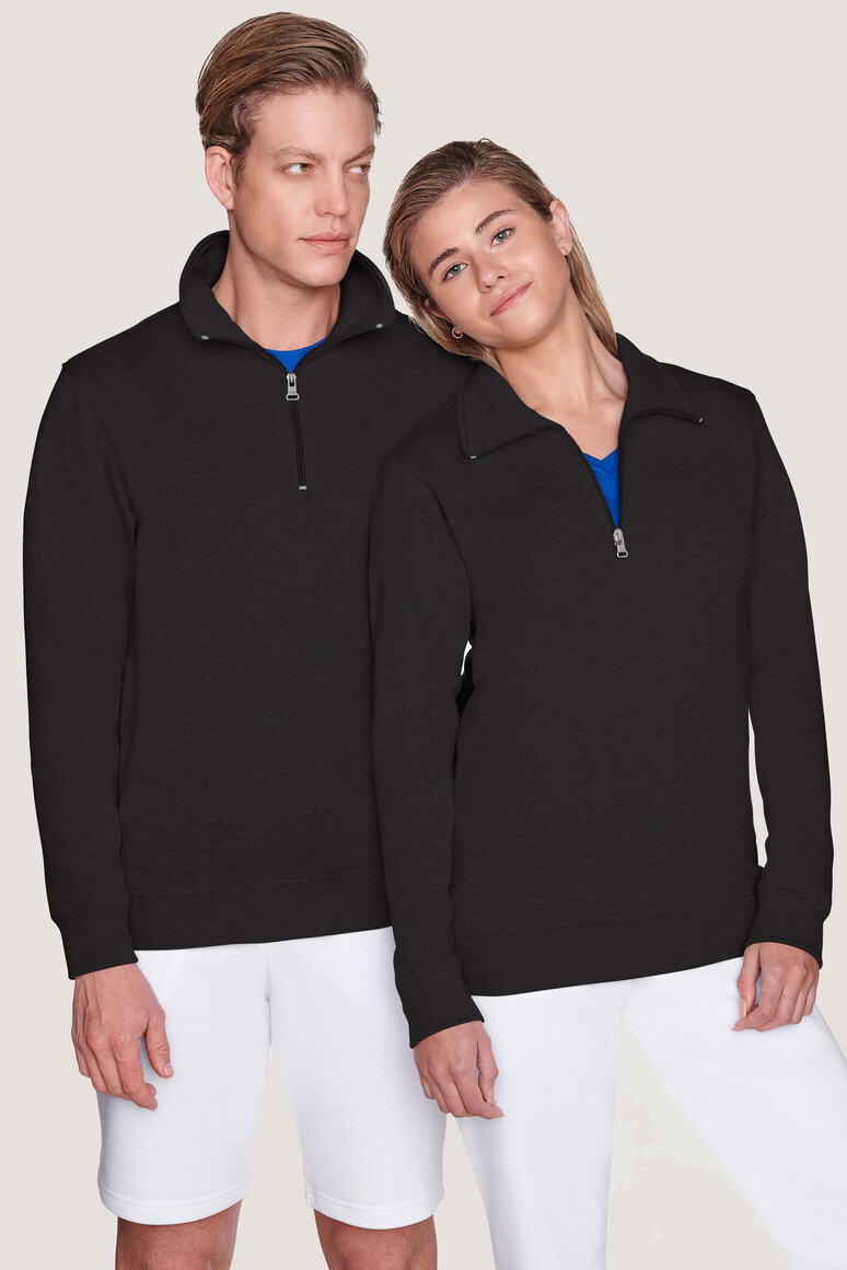 Der klassische Troyer überzeugt durch seinen hochwertigen YKK-Reissverschluss und die formstabilen Bündchen mit LYCRA-Anteil. Die Innenseite besteht aus nicht aufgerautem French-Terry, was den Tragekomfort erhöht. Ein zusätzliches Nackenband sorgt für mehr Stabilität.