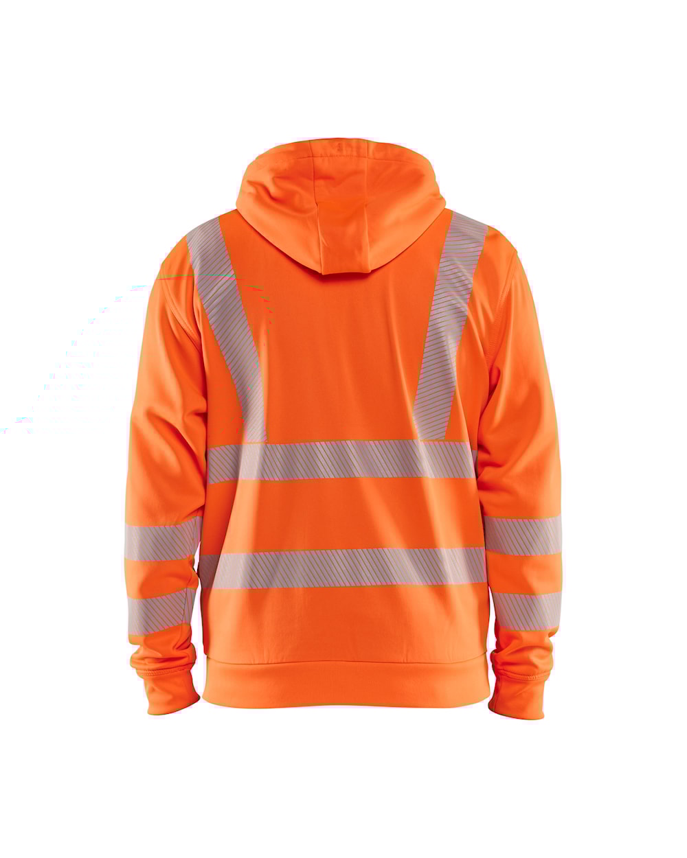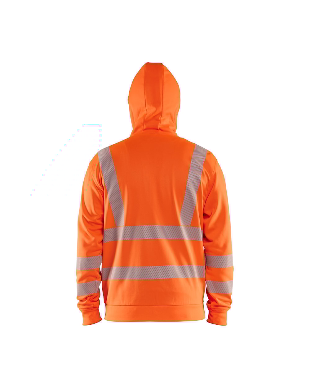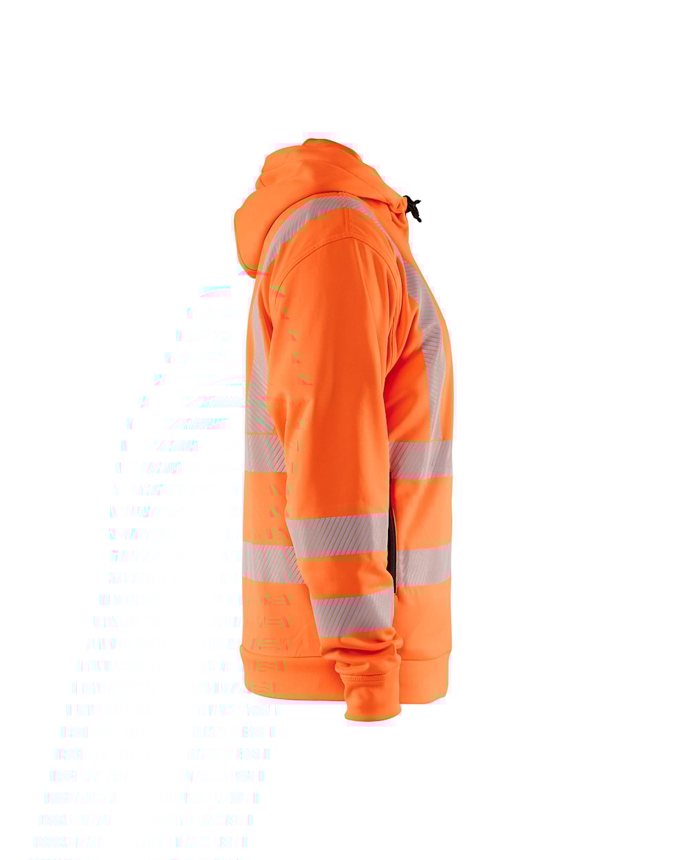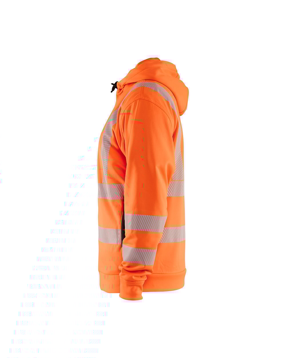 Ein Kapuzensweater in High Vis Klasse 3 mit unterbrochenen Reflexstreifen für zusätzliche Sichtbarkeit. Das Material des Sweaters ist ein weiches und angenehmes Fleece, das eine unschlagbare Kombination aus Sicherheit und Komfort bietet. Er hat eine Kapuze, einen durchgehenden Reißverschluss, eine Brusttasche und Rippstrickbündchen. Er kann industriell gewaschen werden. Zertifiziert nach EN ISO 20471 Klasse 3. Industriewäsche EN ISO 15797.Stoff