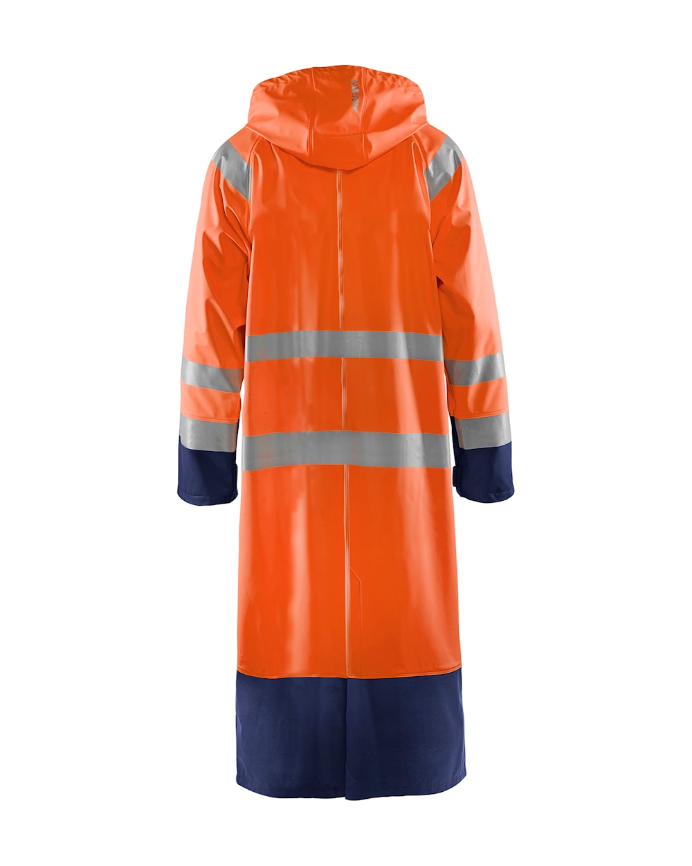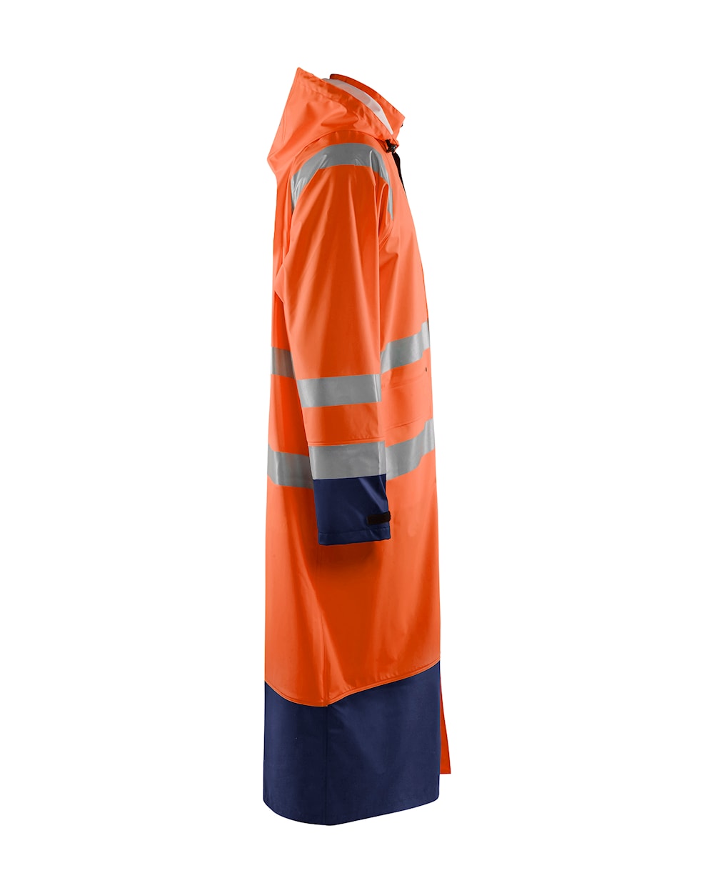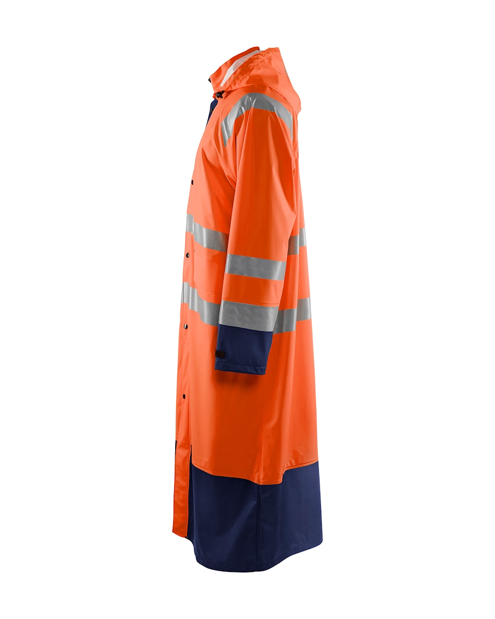 Ein Regenmantel in High Vis für all jene mit Arbeitsaufgaben, die leichte und sanfte Regenkleidung erfordern. Er ist wind- und wasserdicht und hat veschweißte Nähte, sowie eine abnehmbare und verstellbare Kapuze. Der Mantel besitzt leicht zugängliche Vordertaschen mit Patte und einen verdeckten Zwei-Wege Reißverschluss, der bis zum Sturmknopf am Kragen reicht. Eine gute Passform mit verstellbaren Ärmeln mit Klettverschluss. Zertifiziert nach EN 343, Schutzkleidung vor schlechtem Wetter. EN ISO 20471, Klasse 3, Schutzkleidung mit hoher Sichtbarkeit. Die Farbe 3300 ist ein Auslaufmodell. Mehr Informationen erhalten Sie im Katalog 2017. Die Farbe 5300 wurde aktualisiert. Die alten Modelle werden solange der Vorrat reicht, ausgeliefert.
