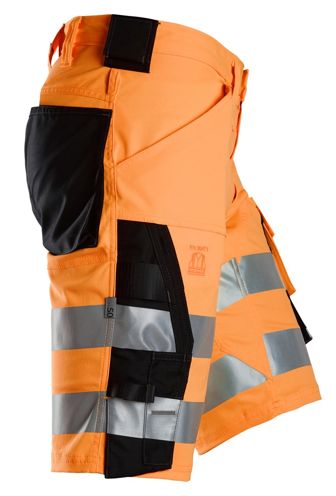 Slim-Fit-Shorts der Warnschutzklasse 1 für Handwerker in den Bereichen Baugewerbe, Straßenbau und Transportwesen.