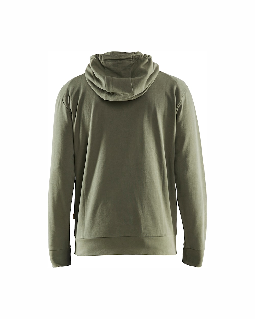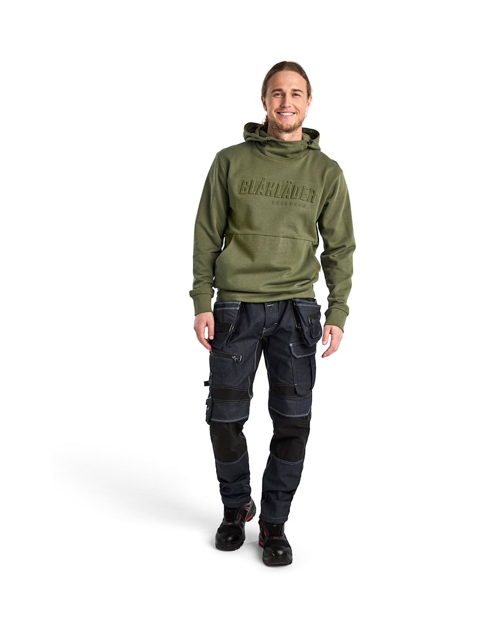 Stylischer, angenehm warmer Sweater aus weichem Jersey, ideal für die Arbeit und Freizeit. Ausgestattet mit einer Handytasche mit Reißverschluss und Öffnungen für Kopfhörer in der Tasche. Der Kapuzensweater ist mit einem sehr auffälligen 3D-Druck auf der Brust mit der Aufschrift "Blåkläder" verziert, der zeigt, dass Ihr Herz in Sachen Arbeitskleidung an der richtigen Stelle sitzt.