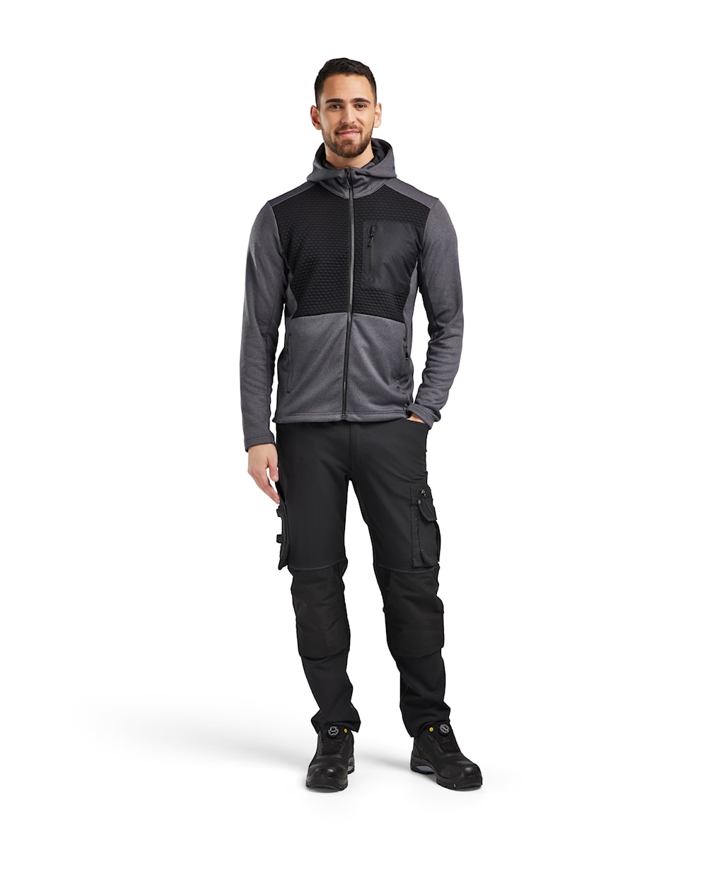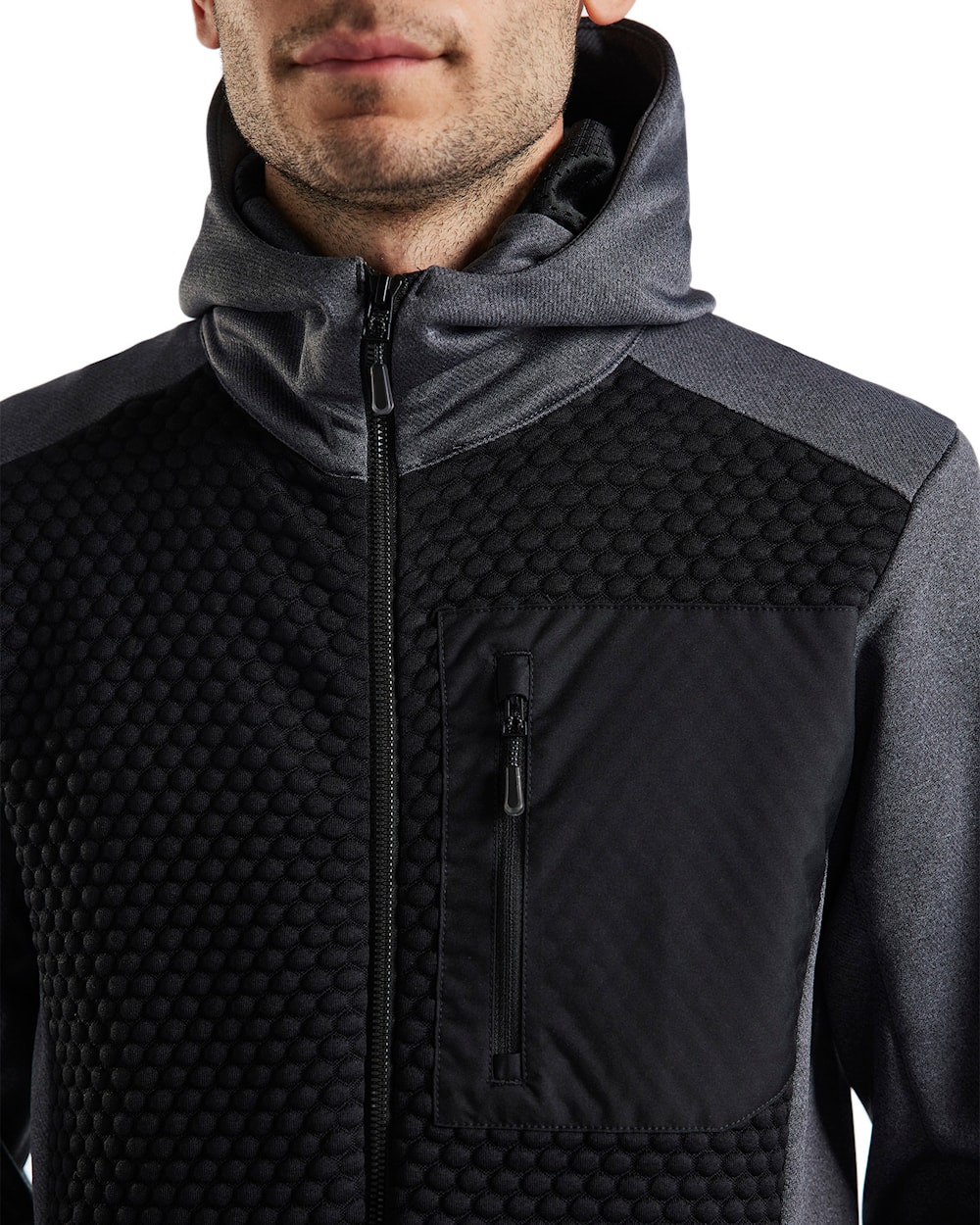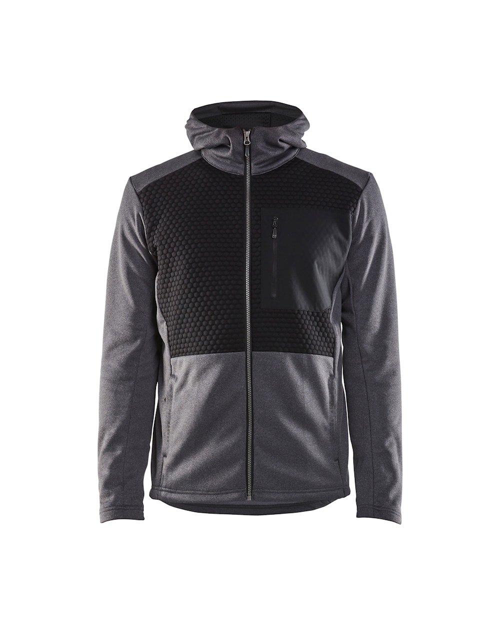 Stylischer Kapuzensweater, der sich sowohl für den Einsatz bei der Arbeit als auch im Freizeitbereich eignet. Dieser Polyester-Kapuzensweater verfügt über einen durchgängigen Reißverschluss und einen etwas längeren Hals. Er hat einen Kordelzug am Saum, schwarze, dezente Reflexstreifen auf der Vorderseite und der Kapuze, sowie eine Brusttasche mit Platz für ein Logo.