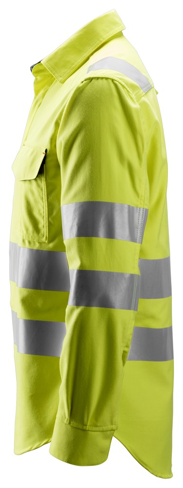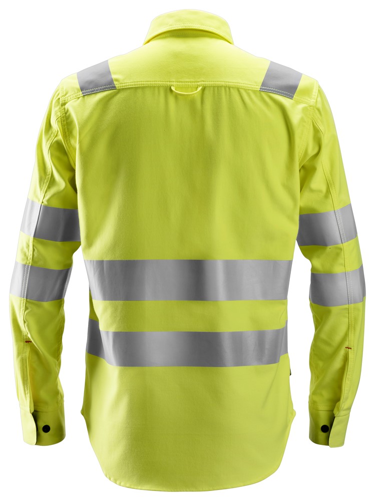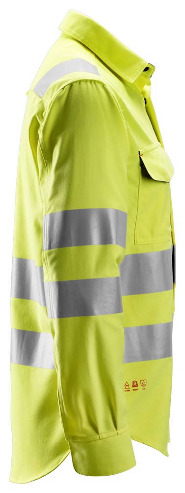 Warnschutz-Langarmhemd mit integriertem Wärme- und Flammschutz und zertifiziertem Schutz vor Störlichtbögen. Das Hemd schützt auch vor leichteren Chemikalien gemäß EN ISO 13034. Warnschutzklasse 3 bietet verbesserte Sicherheit bei schlechten Lichtverhältnissen. Darüber hinaus verfügt das Hemd über Druckknöpfe für einfaches An- und Ausziehen in Notfällen. Ausgestattet mit bequemen Brusttaschen mit Stiftfächern. Mit einer ProtecWork-Jacke kombinierbar, um einen noch höheren Schutz gegen Störlichtbögen zu erzielen.