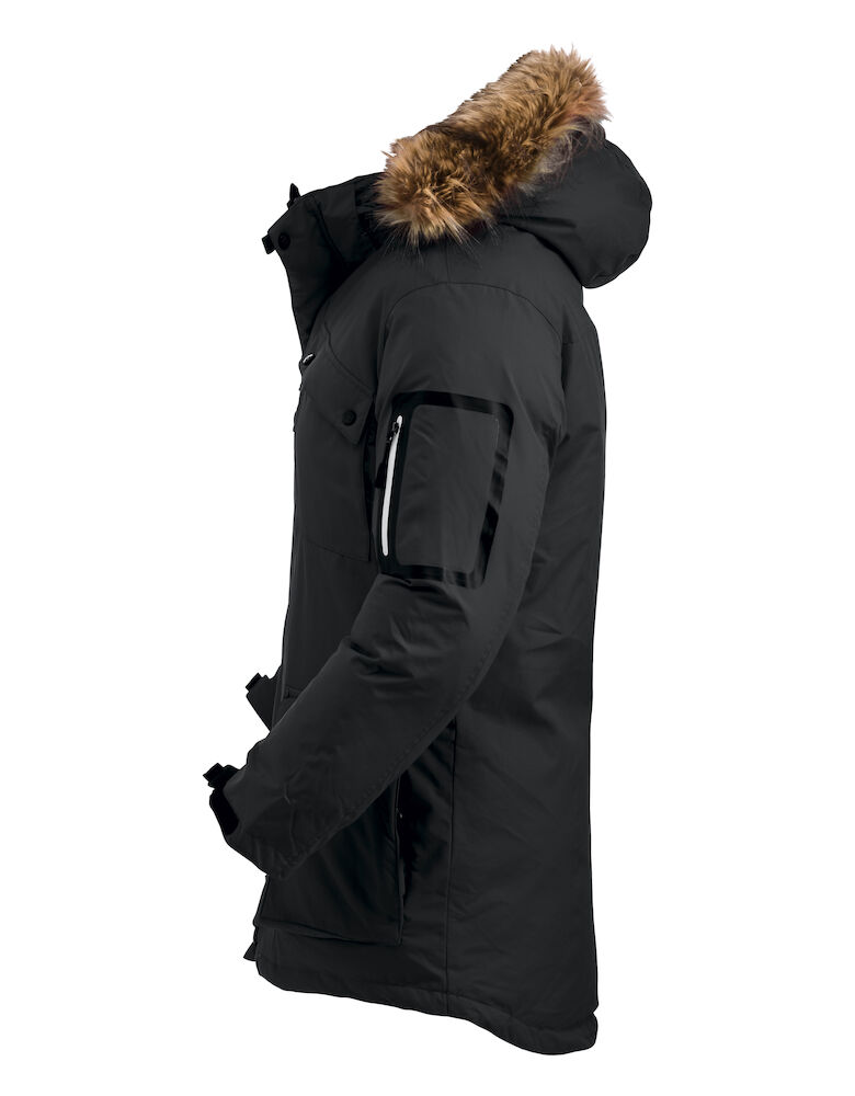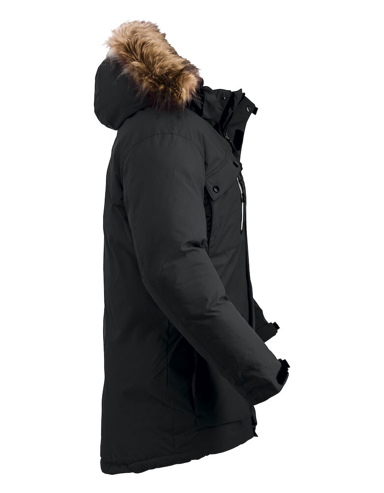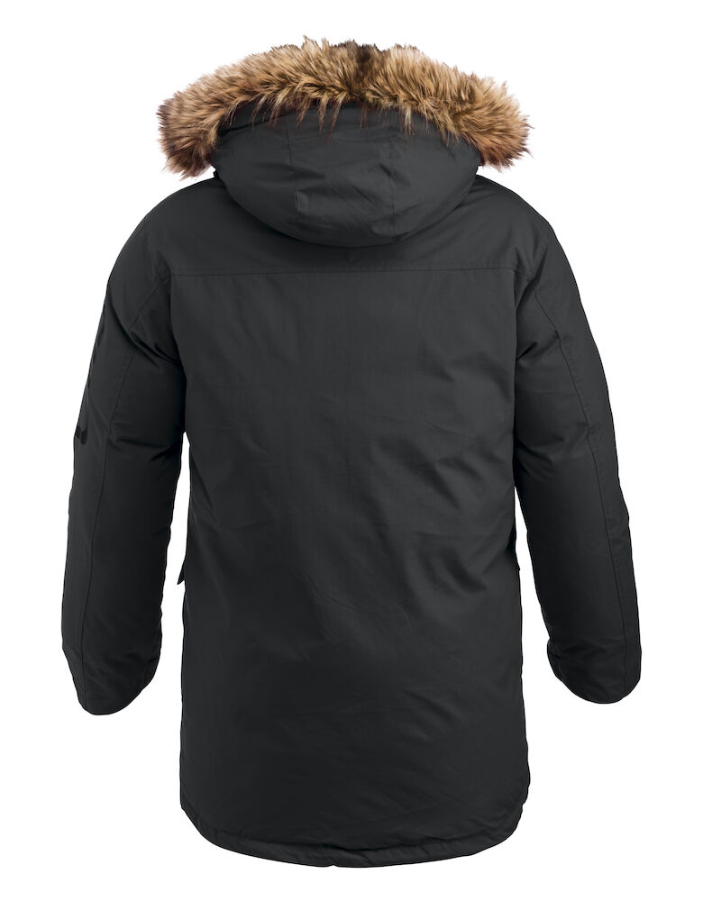 Superwarmer Expeditions Parka. Viele, grosse Taschen, teilweise mit wasserdichten Reissverschlüssen. Die Kapuze sowie der Kunstpelz sind getrennt abnehmbar. Abgedeckter Reissverschluss, Ärmelabschlüsse mit Klett verstellbar und mit gerippten Manschetten, elastischer Kordelzug in Taille, Druckknöpfe aus Gummi. Wassersäule 5000mm.