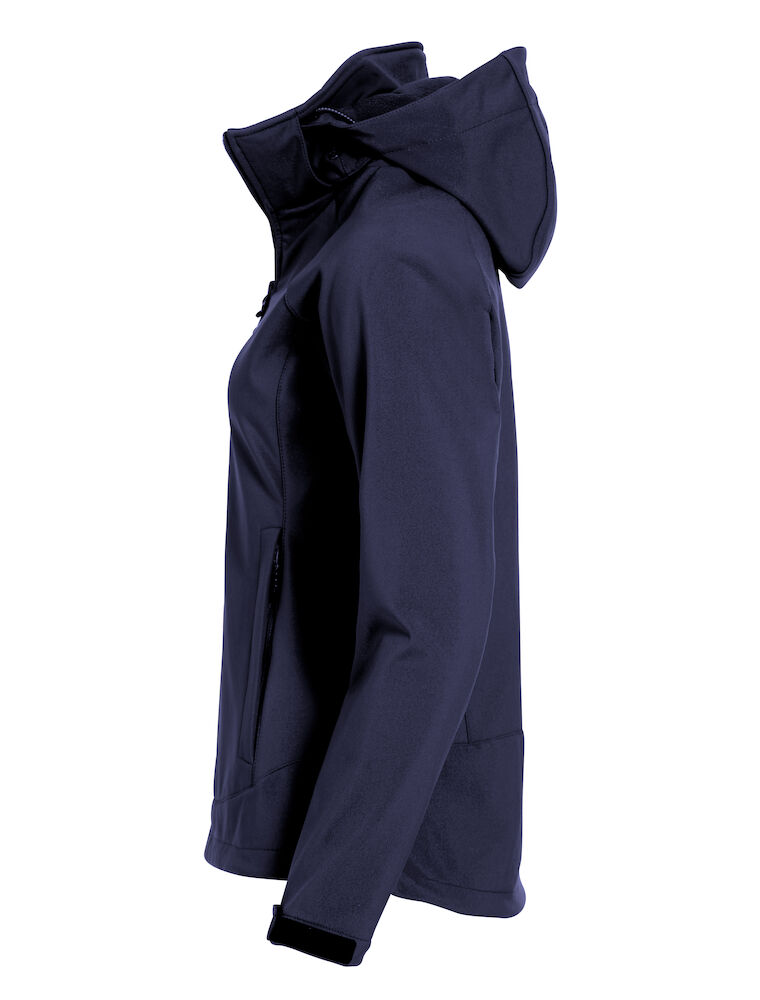 Sportliche und funktionelle Softshell Jacke mit zwei Seitentaschen, zwei Innentaschen und einer Brusttasche mit Reflexstreifen. Abnehmbare Kapuze, verstellbare Ärmelbündchen und Kordelzug im Bund. TPU Membrane und Fleece auf der Innenseite. Wassersäule WP 3000/ Atmungsaktivität MVP 3000.