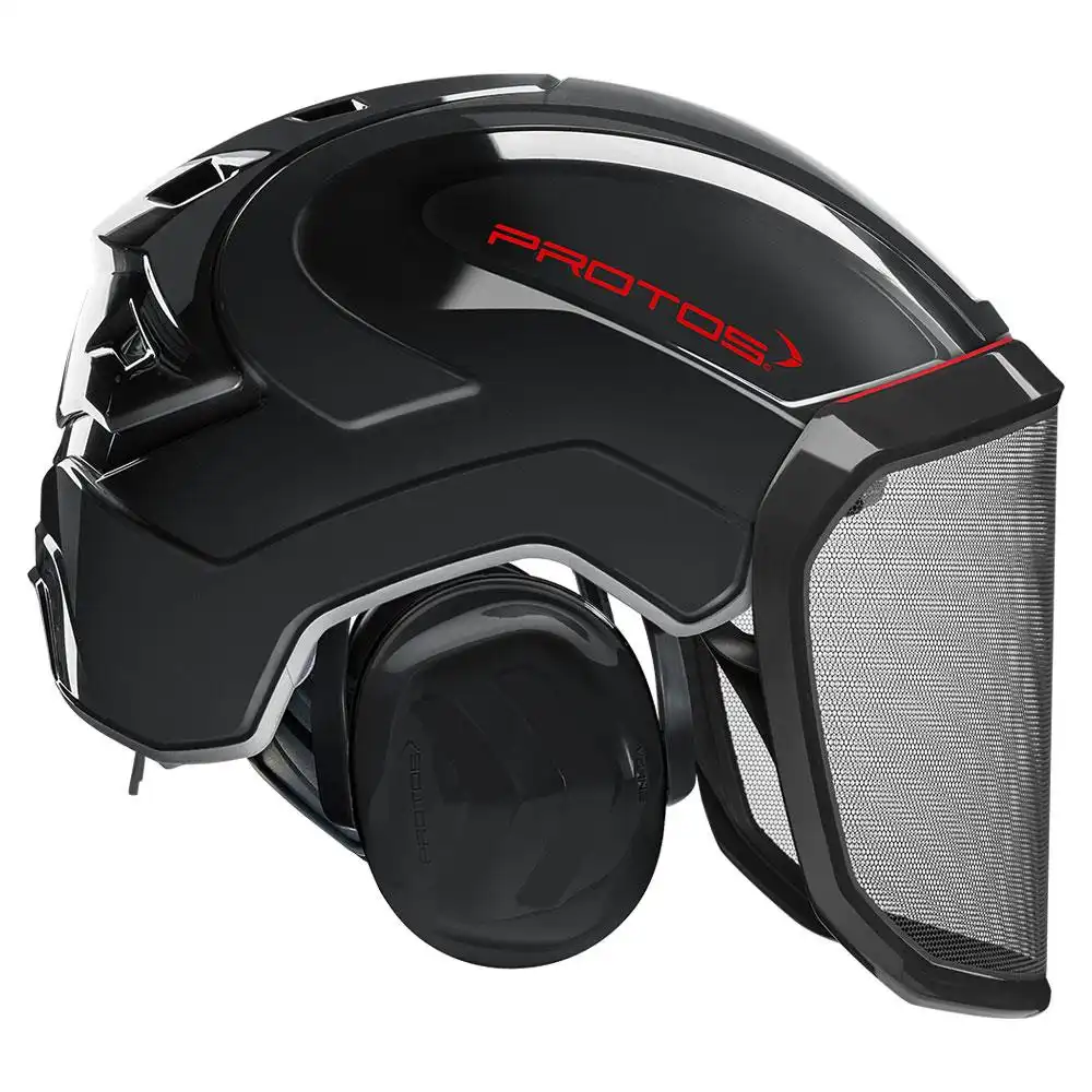 Der Forstschutzhelm "Protos Integral Forest" mit dem Visier F39 von PROTOS® ist die perfekte Wahl für leichten, sicheren und effektiven Kopfschutz im Forstbereich. Der Name "Integral" verdeutlicht, dass alle Komponenten in der Helmschale integriert sind, was ein Hängenbleiben an Ästen verhindert.