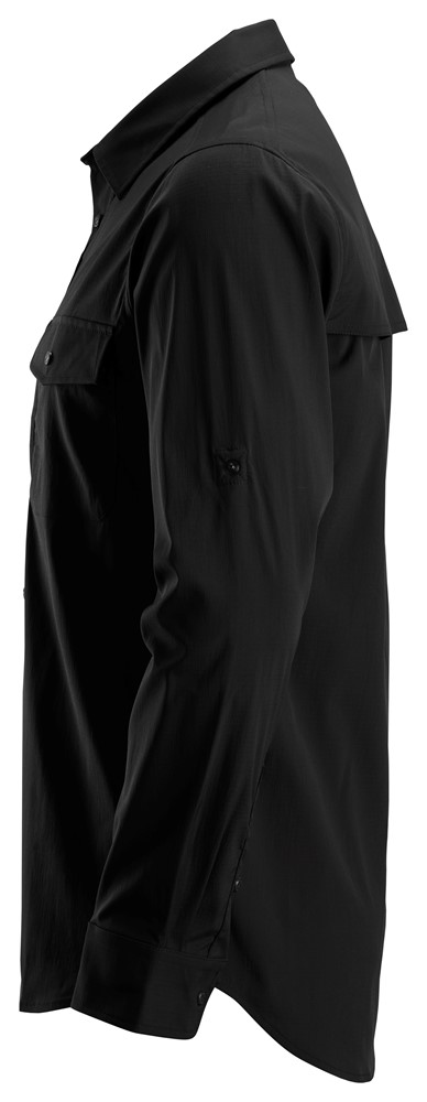 Leichtes Langarmhemd, das effiziente Atmungsaktivität für eine optimale Kühlung für Arbeiten bei Hitze im Freien bietet. Das Hemd besteht aus einer Mischung aus Nylon und Elastan. Das Material enthält Repreve, das aus recycelten PET-Flaschen hergestellt wird. Für eine verbesserte Belüftung ist das dehnbare Hemd hinten im Schulterbereich mit Mesh ausgestattet. Eine Pattentasche mit Knopf und eine verdeckte Reißverschlusstasche hinter der Pattentasche runden die Funktionalität ab. LSV 50+.