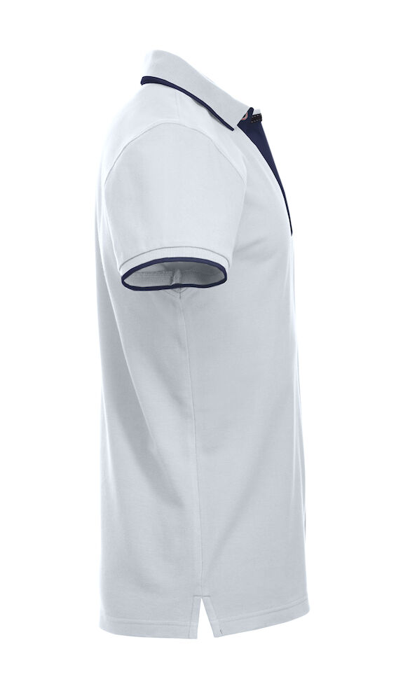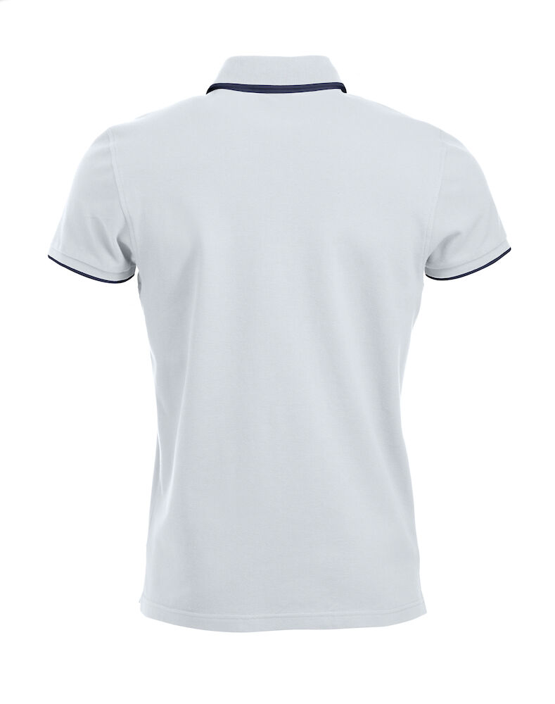 Polo Shirt mit kontrastfarbenen Knöpfen, Knopfleiste, Nackenband und Seitenschlitzen. Kontraststreifen am Kragen und Ärmelbündchen. Mit 3 Knöpfen bei den Herren und 4 Knöpfen bei den Damen.