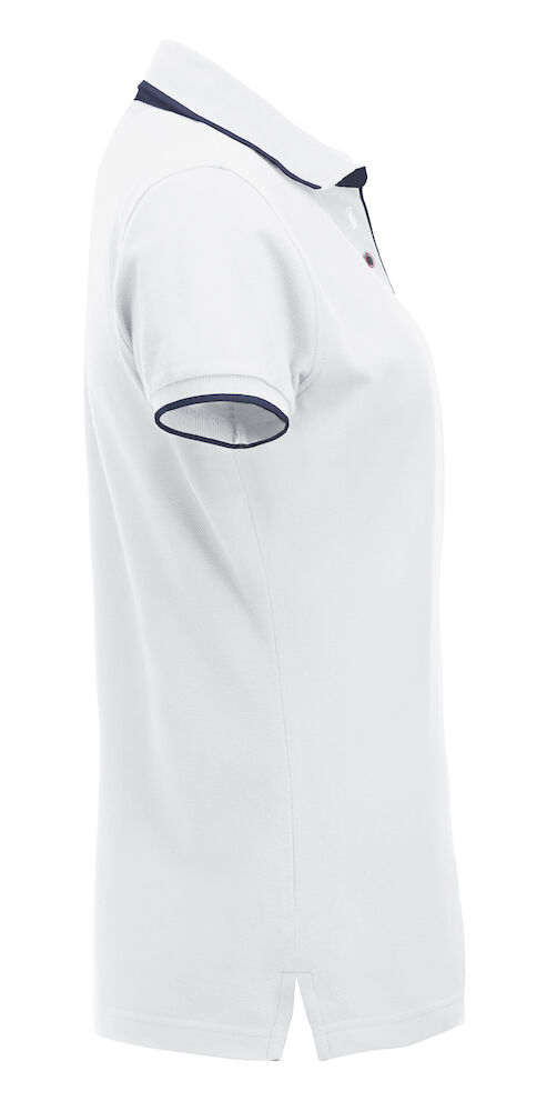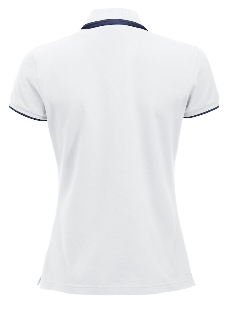 Polo Shirt mit kontrastfarbenen Knöpfen, Knopfleiste, Nackenband und Seitenschlitzen. Kontraststreifen am Kragen und Ärmelbündchen. Mit 3 Knöpfen bei den Herren und 4 Knöpfen bei den Damen.