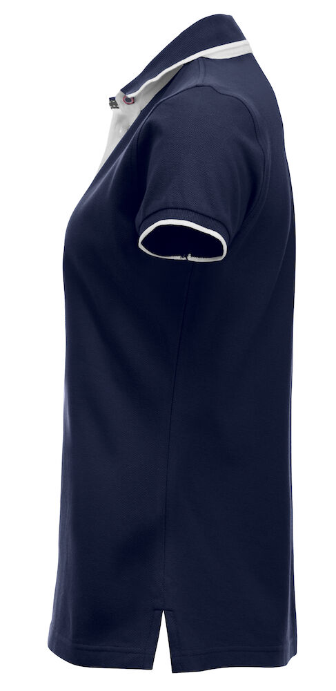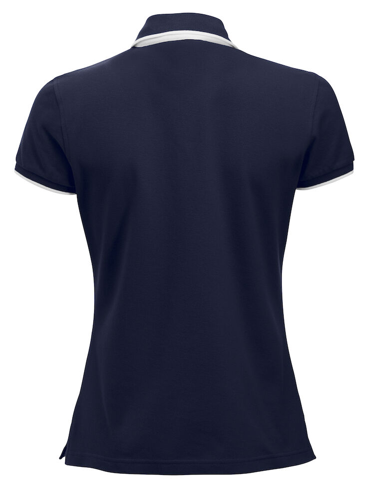 Polo Shirt mit kontrastfarbenen Knöpfen, Knopfleiste, Nackenband und Seitenschlitzen. Kontraststreifen am Kragen und Ärmelbündchen. Mit 3 Knöpfen bei den Herren und 4 Knöpfen bei den Damen.